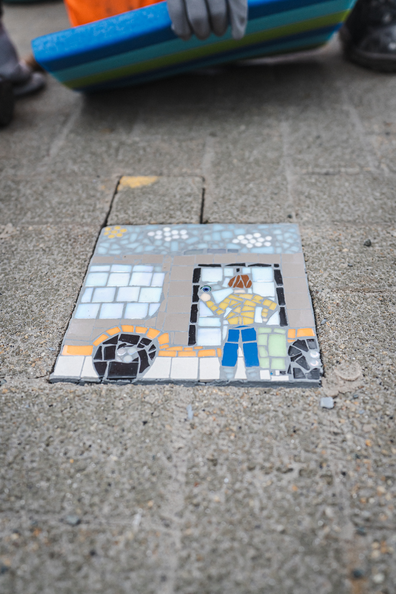 Deze nieuwe openbare ruimte krijgt ook een lokale artistieke tint. Drie buurtscholen werden uitgenodigd om mee de brug te verfraaien door mozaïeken te maken rond het thema duurzame mobiliteit. De leerlingen ontwierpen 15 tegels en brachten ze ook aan op de brug. Hierdoor is de infrastructuur niet alleen een plaats waar mensen voorbij komen, het is ook een creatieve plek geworden die kan bijdragen tot een breder bewustzijn rond klimaat en mobiliteit.