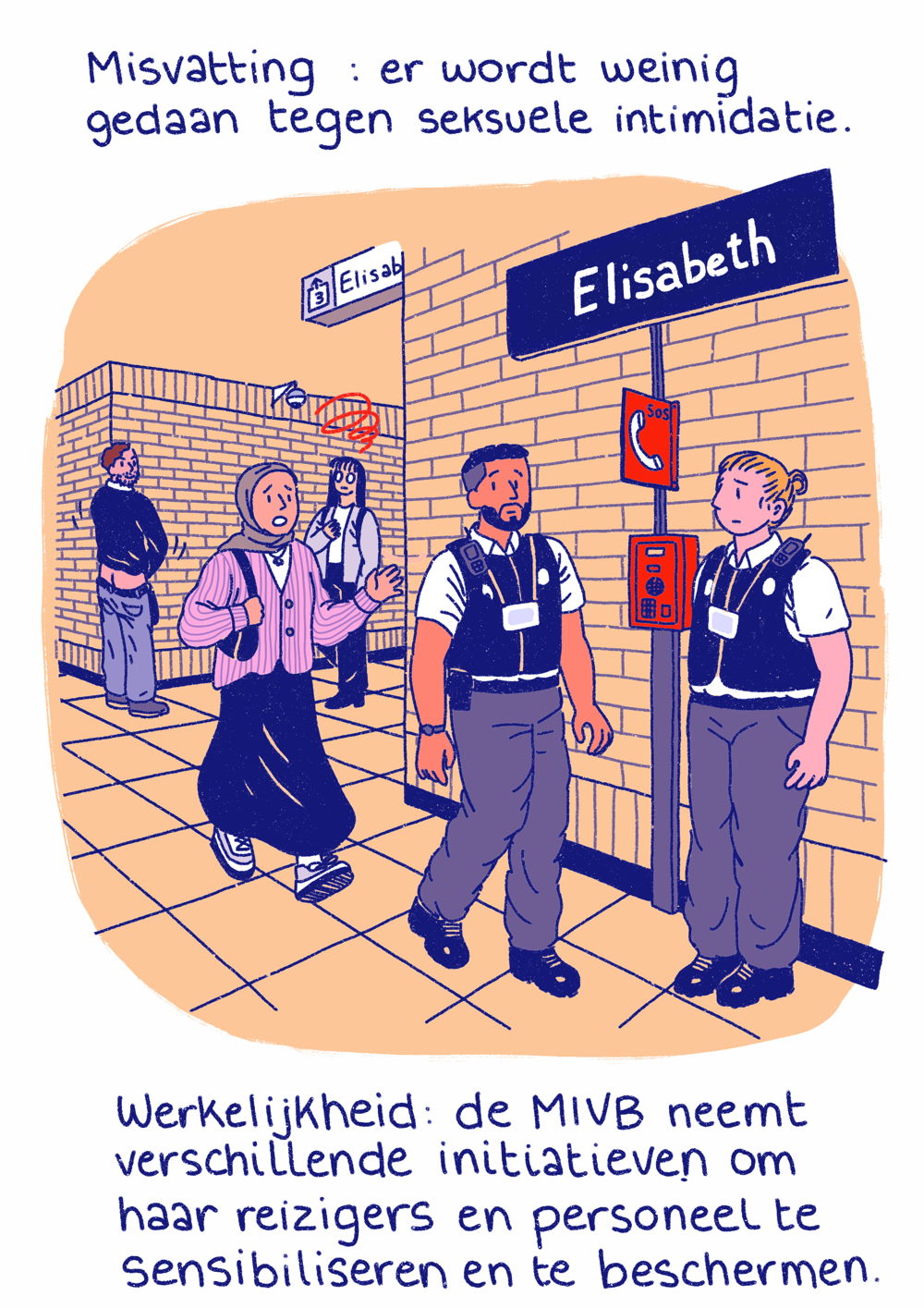 De MIVB bindt de strijd aan met seksisme en seksuele intimidatie, een maatschappelijk fenomeen dat overal in de openbare ruimte voorkomt en waar ook het openbaar vervoer niet aan ontsnapt. De Brusselse vervoersmaatschappij geeft op haar website informatie en tips voor zowel slachtoffers als getuigen, zodat zij weten hoe te reageren op dergelijk onaanvaardbaar gedrag. De website wordt aangevuld met een brochure die beschikbaar is voor reizigers en met opleidingen voor het MIVB-personeel.