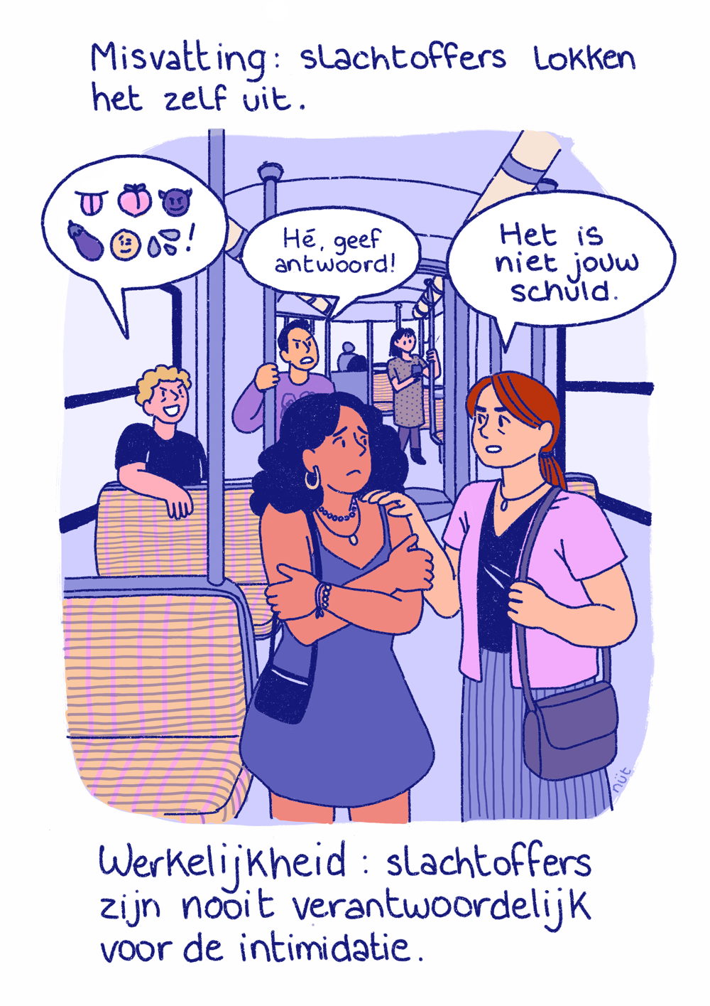Het is niet altijd eenvoudig om te weten hoe te reageren bij seksisme of seksuele intimidatie. Slachtoffers en getuigen kunnen zich machteloos voelen, ook in het openbaar vervoer. Daarom lanceert de MIVB, naast de vele maatregelen die al bestaan om de veiligheid op haar net te garanderen, een sensibiliserings- en informatiecampagne voor reizigers en personeel, naar aanleiding van de Internationale Dag voor de Uitbanning van Geweld tegen Vrouwen op 25 november.