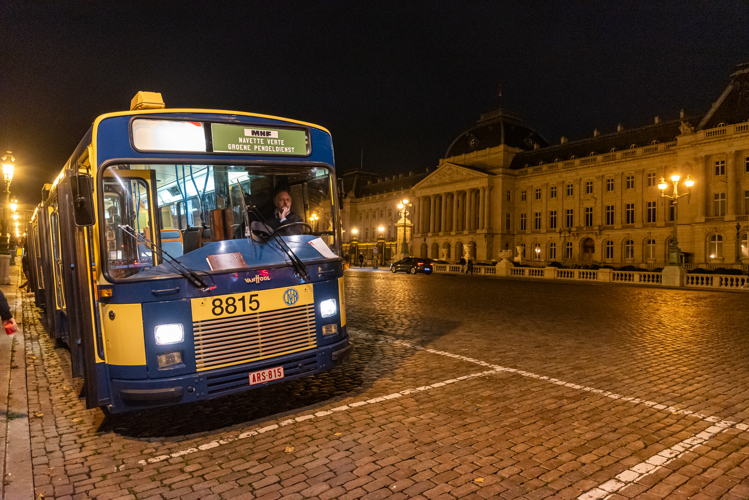 De blauwe en groene pendeldiensten vertrekken vanaf het Paleizenplein, maken een lus en eindigen terug aan het Paleizenplein. De eerste bussen vertrekken om 19 uur en om de 10 minuten vertrekt een volgende. De laatste bus vertrekt om 1 uur ‘s nachts vanaf het Paleizenplein.