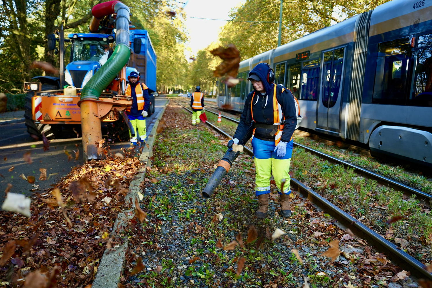 Om de risico’s te beperken worden de gevallen bladeren zoveel mogelijk opgeruimd in samenwerking met Net Brussel en worden de rails regelmatig schoongemaakt en bestrooid met zand om de grip van de trams te verbeteren. Daarvoor zet de MIVB twee speciale voertuigen in die dag en nacht op het net zijn, vanaf midden september tot het einde van het jaar.
